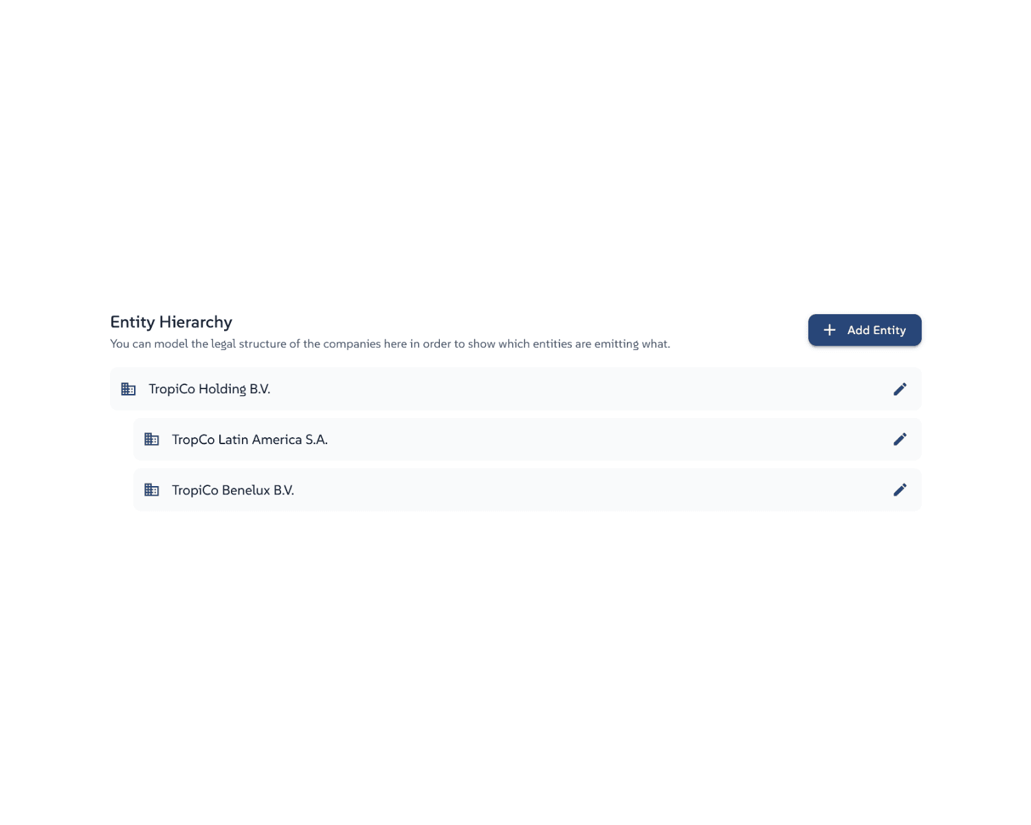 You can model what companies in your legal hierarchy are actually making the emissions. Or just start with one company.