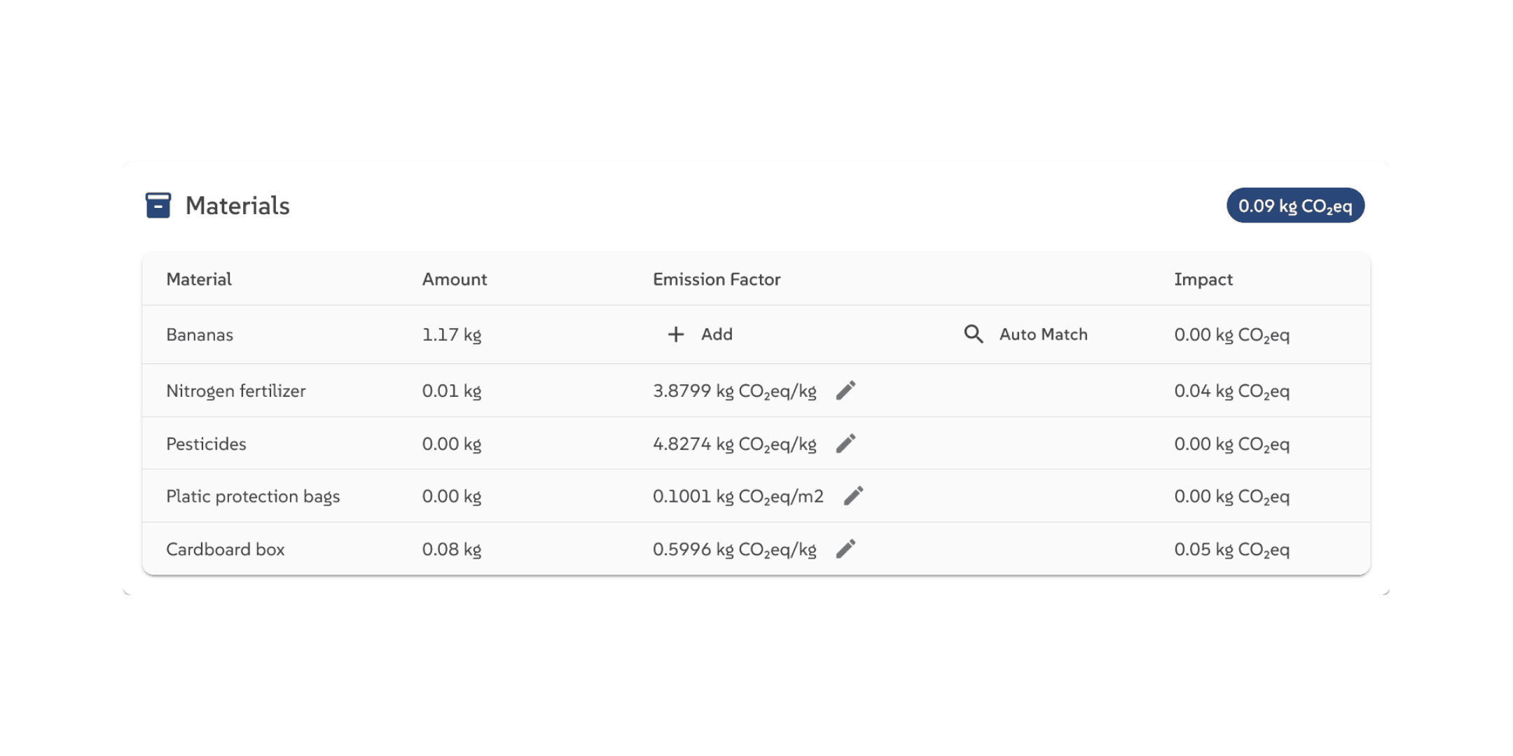 Our smart AI system will match your bill of material to the most suitable emission factors in order to get the most accuracy picture.