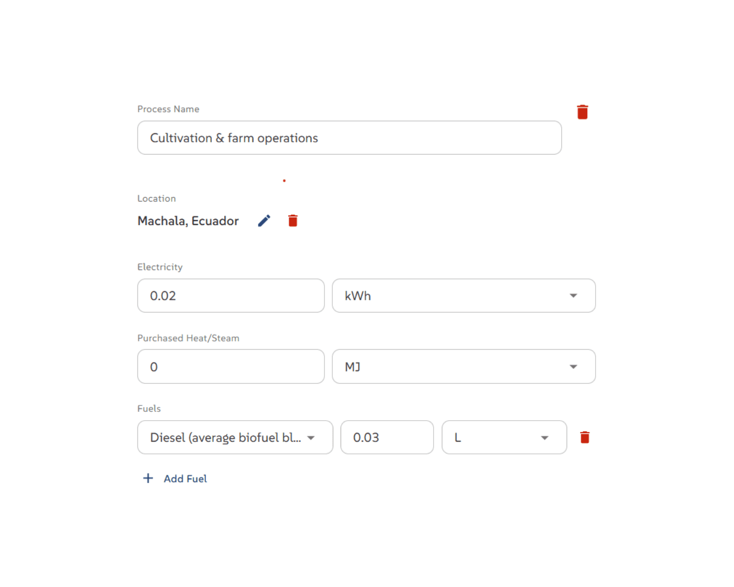 Show which stages your product travels through and indicate how much energy or fuels are used for that product. What energy is needed for you to produce and distribute the product?