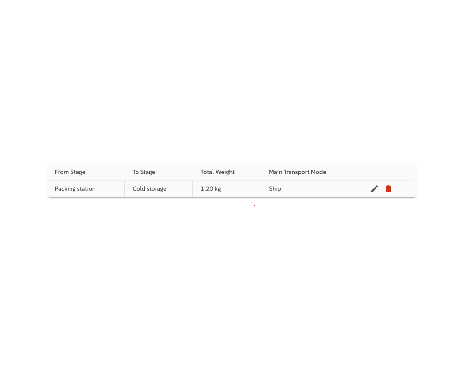 Indicate what transport there is between stages. Does your product travel by ship or truck from production to your distribution warehouse?